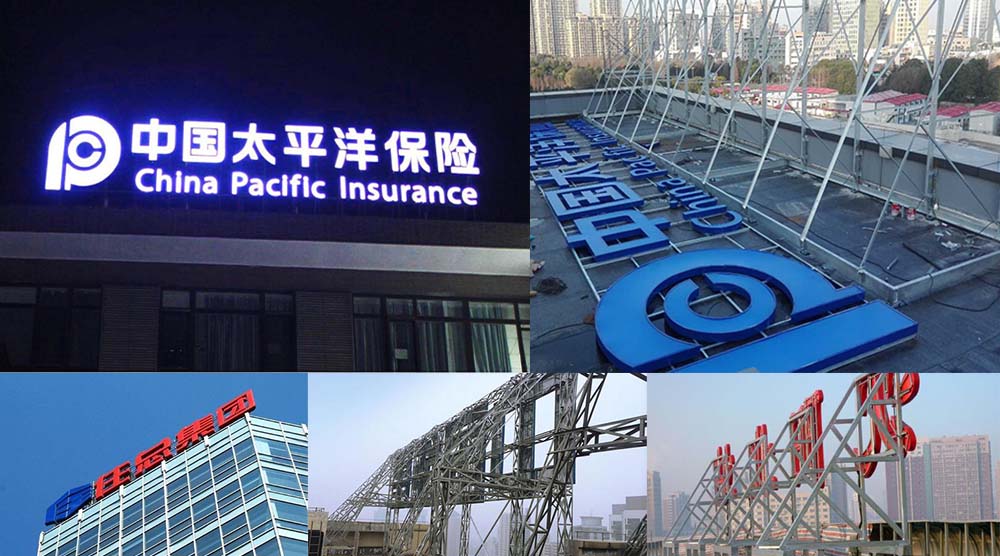 鋼架一般由(鍍鋅)角鐵焊成片梯或者方籠制成,樓頂發(fā)光字字形由不銹鋼板或鍍鋅板做字殼,內(nèi)置LED模組,吸塑字字面由亞克力板制作。